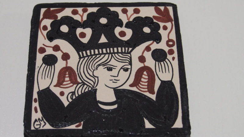 Keramikplatte grösse 10 x 10 cms. händlisch hergestellt. Socarrat.